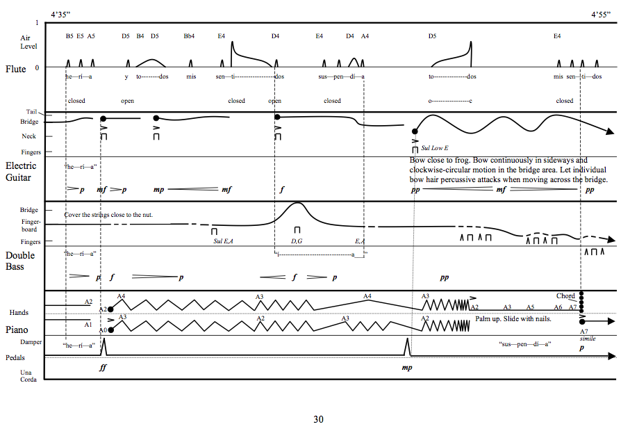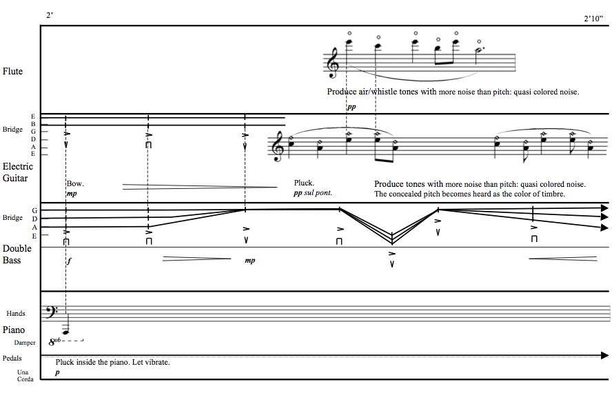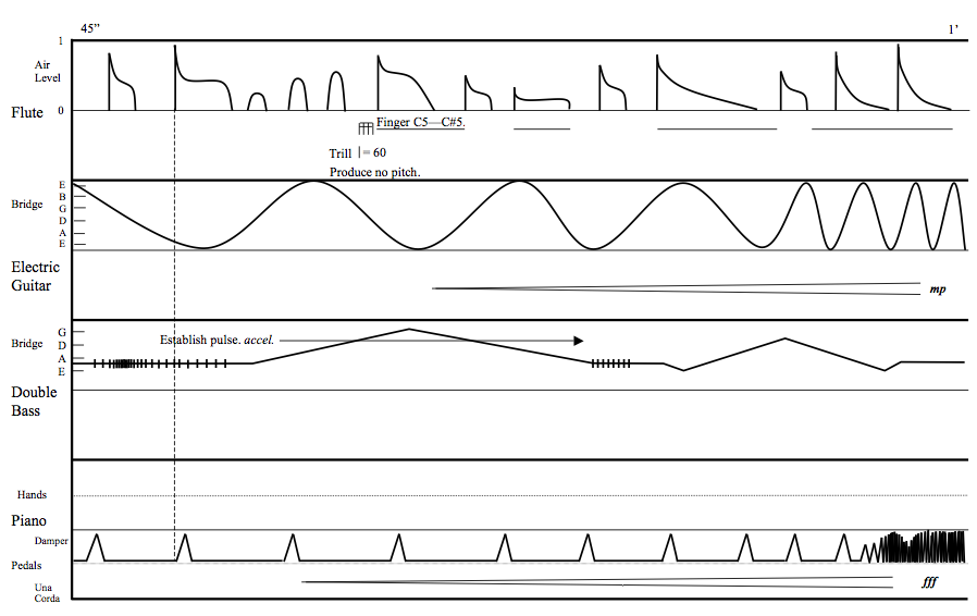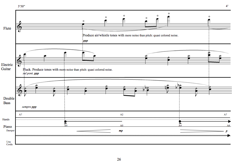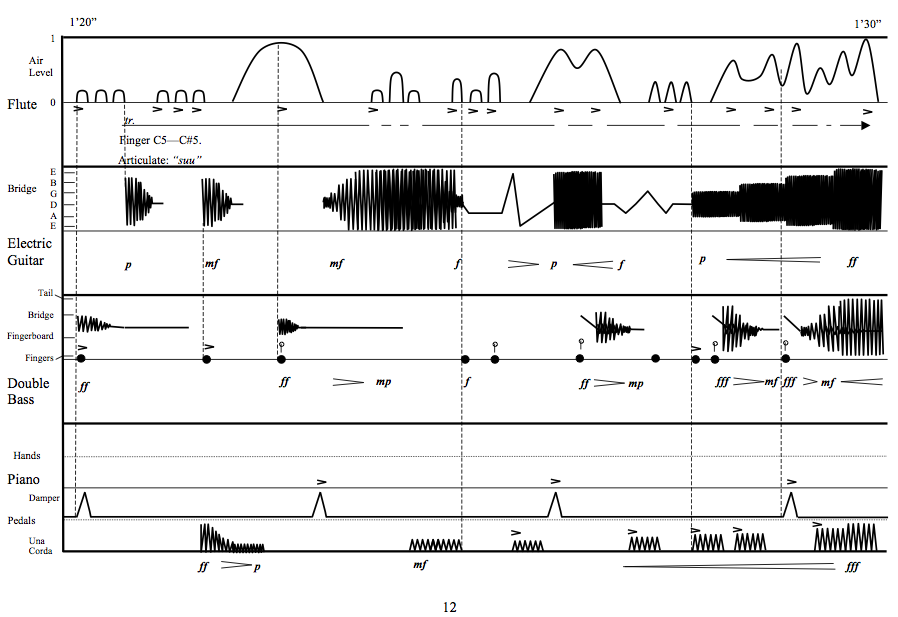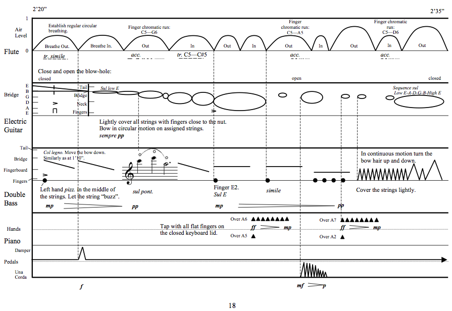 To hear some audio examples (version for flute, electric guitar, double bass and piano), click here: Examples (Now Ensemble, MP3 , 2.2Mb) Click to view the score exmples. |